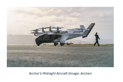 Archer, an aerospace company based in San Jose, CA, designs and develops electric vertical takeoff and landing (eVTOL) aircraft for regional air mobility (RAM) or urban air mobility (UAM). Lilium, a German aerospace company, was also a key player in eVTOL but filed for insolvency early this year.